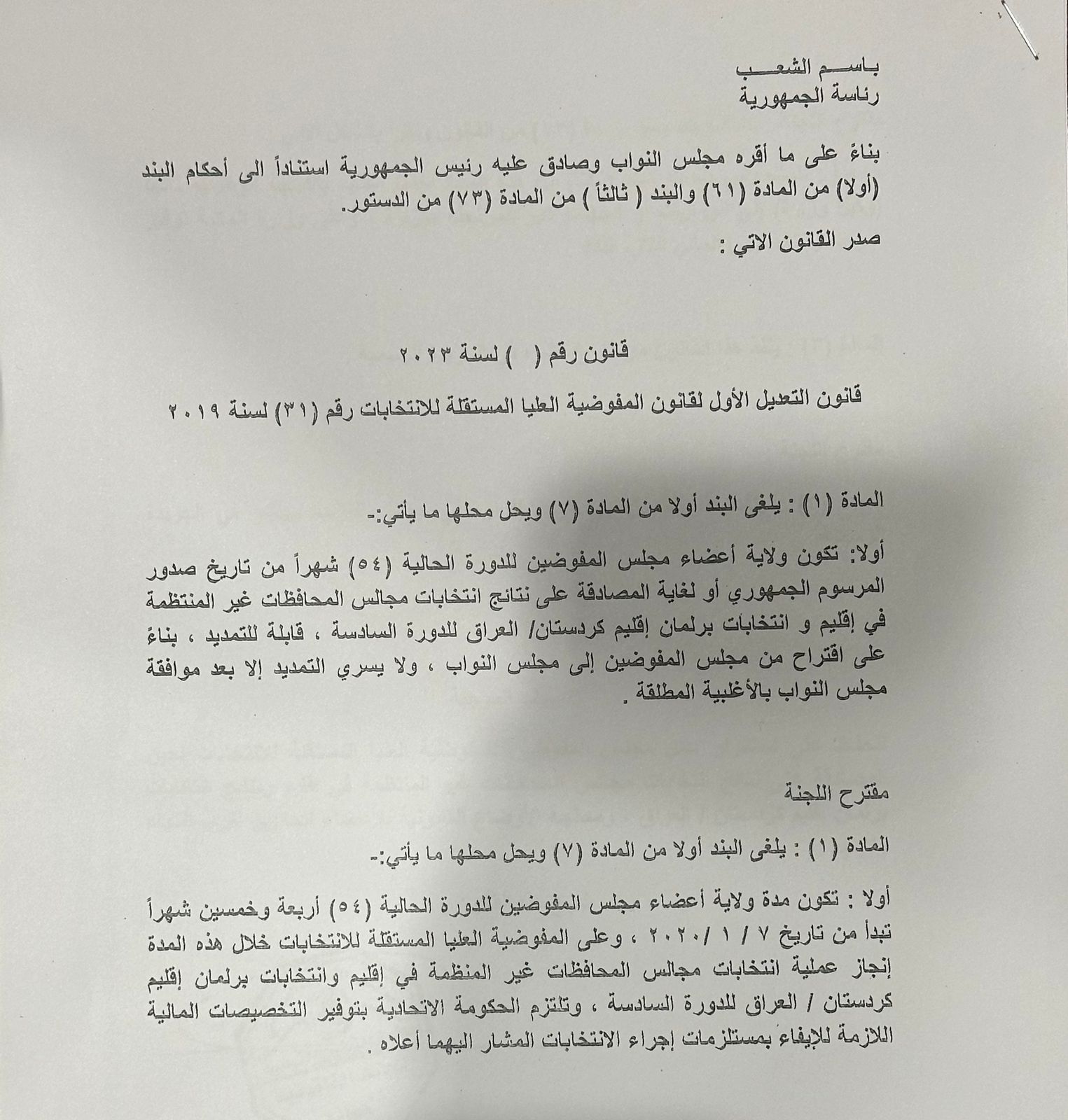 سياسةالرشيد تنشر نص تعديل قانون مفوضية الانتخابات المصوت عليه من البرلمان قبل سنتين 2 مشاهدات شارك الرشيد تنشر نص تعديل قانون مفوضية الانتخابات المصوت عليه من البرلمان الرشيد تنشر نص تعديل قانون مفوضية الانتخابات المصوت عليه من البرلمان الوسومالبرلمانقانون المفوضيةقد يهمك أيضا أمن العراق يعلن إنشاء "بنك معلومات وطني" للأسلحة قبل 10 دقائق 2 مشاهدات عربي ودولي قيود وضوابط جديدة.. اليابان تشدد سياسات الهجرة رغم شيخوخة السكان قبل 14 دقيقة 4 مشاهدات محليات العراق يستعد لاستقبال حالة جوية غير مستقرة وأمطار غزيرة اعتباراً من مساء الغد قبل 43 دقيقة 3 مشاهدات عربي ودولي ألمانيا: سيتعين على أوروبا الحوار مع روسيا "في مرحلة ما" قبل 58 دقيقة 5 مشاهدات عربي ودولي الجمعية العامة للأمم المتحدة تعتمد قرارا يجدد ولاية وكالة الأونروا 3 سنوات قبل ساعة واحدة 14 مشاهدات
