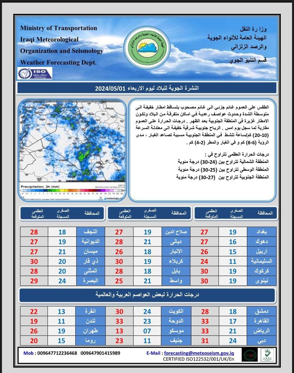 محلياتطقس العراق.. استمرار الأمطار وارتفاع بدرجات الحرارة خلال الأيام المقبلة قبل سنتين 3 مشاهدات شارك أعلنت هيئة الأنواء الجوية، حالة طقس العراق خلال الأيام المقبلة، فيما أشارت إلى استمرار الأمطار وارتفاع بدرجات الحرارة. طقس العراق.. استمرار الأمطار وارتفاع بدرجات الحرارة خلال الأيام المقبلة طقس العراق.. استمرار الأمطار وارتفاع بدرجات الحرارة خلال الأيام المقبلة طقس العراق.. استمرار الأمطار وارتفاع بدرجات الحرارة خلال الأيام المقبلة الوسومالأمطارطقس العراققد يهمك أيضا عربي ودولي ارتفاع عدد ضحايا الفيضانات والانهيارات الأرضية في إندونيسيا إلى 846 قبل 12 دقيقة 2 مشاهدات عربي ودولي الإعلام الإسرائيلي بعد مقتل أبو شباب: "حماس" اخترقت مناطق سيطرتنا قبل 46 دقيقة 6 مشاهدات عربي ودولي الولايات المتحدة تقلص مدة تصاريح عمل المهاجرين إلى 18 شهرا قبل ساعة واحدة 7 مشاهدات عربي ودولي تفاصيل جديدة.. غارة أميركية تقتل عميلا سرياً في سوريا بدل قيادي داعشي قبل ساعة واحدة 8 مشاهدات سياسة المفوضية تحدّد آلية منح مقعد المرشح المستبعد: يحل محله أعلى الخاسرين من نفس الكتلة قبل ساعتين 7 مشاهدات