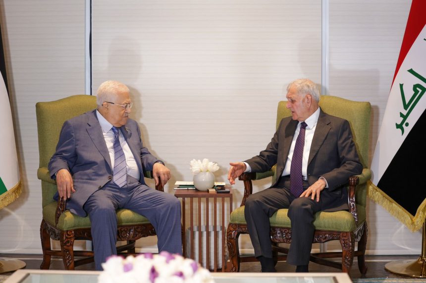 من جانبه، أعرب الرئيس عباس عن تقدير فلسطين حكومة وشعباً للمواقف التاريخية للعراق الداعمة والمساندة للقضية الفلسطينية، مثمناً جهود العراق ومساعداته الدائمة لأشقائه الفلسطينيين.