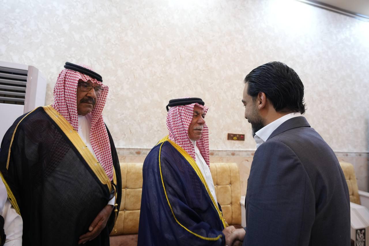الرئيس الحلبوسي يلتقي عدداً من الشيوخ والوجهاء في مضيف الشيخ بتال النجم الجغيفي في حديثة.. صور