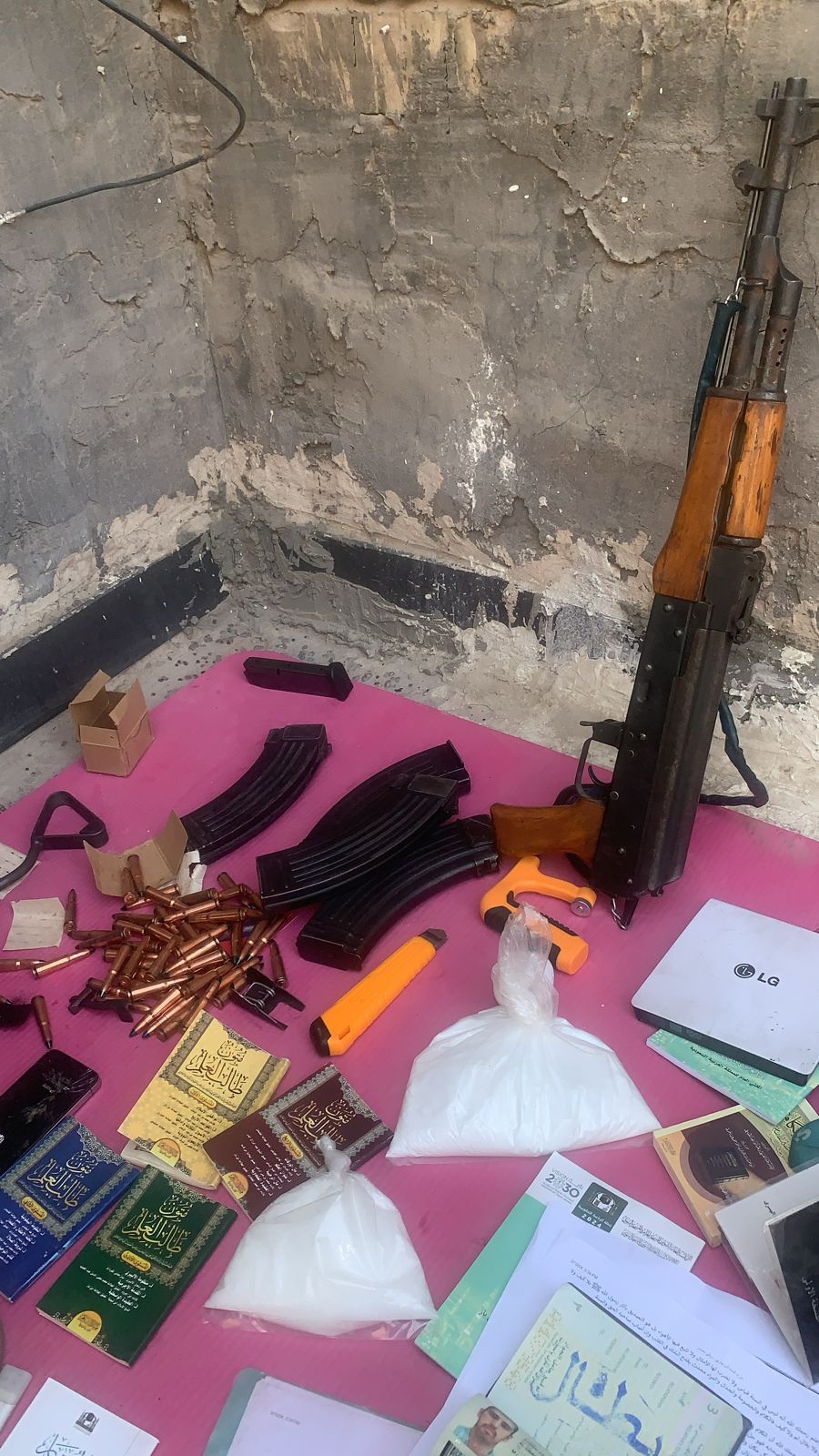 تنشر الرشيد، مجموعة صور لأسلحة ومنشورات دينية عثرت عليها شرطة الكرخ بعد مداهمة منزل أستاذ جامعي في منطقة كفاءات السيدية ببغداد.