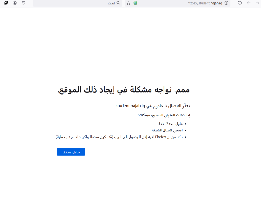 محلياتبعد دقائق من انطلاقها.. توقف منصة "نجاح" الخاصة بإعلان نتائج السادس الاعدادي قبل سنة واحدة 8 مشاهدات شارك بعد دقائق من انطلاقها.. توقف منصة "نجاح" الخاصة بإعلان نتائج السادس الاعدادي الوسوممنصة نجاحنتائج السادس الاعداديقد يهمك أيضا سياسة المجلس السياسي الوطني يعلن الاتفاق على آليات تسهل حسم اختيار رئيس مجلس النواب قبل ساعتين 7 مشاهدات الحكم الرابع الـVAR يتلاعب بدورينا .. تفاصيل صادمة في الحكم الرابع قبل 3 ساعات 7 مشاهدات عربي ودولي الحكومة الليبية تعلن مقتل رئيس الأركان محمد الحداد ومرافقيه اثر تحطم طائرتهم في أنقرة قبل 3 ساعات 18 مشاهدات عربي ودولي مقتل رئيس الأركان الليبي "محمد الحداد" ومرافقيه بتحطم طائرتهم أثناء عودتهم من أنقرة قبل 3 ساعات 16 مشاهدات عربي ودولي وسائل إعلام تركية: العثور على حطام طائرة رئيس الاركان الليبي التي سقطت بعد إقلاعها من أنقرة قبل 3 ساعات 9 مشاهدات