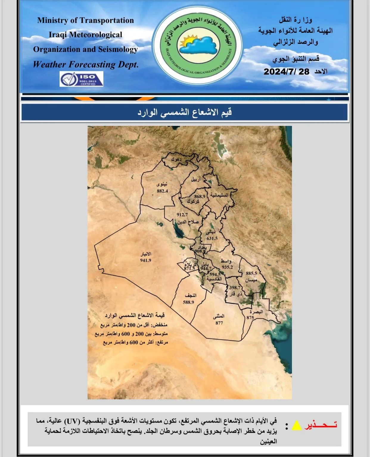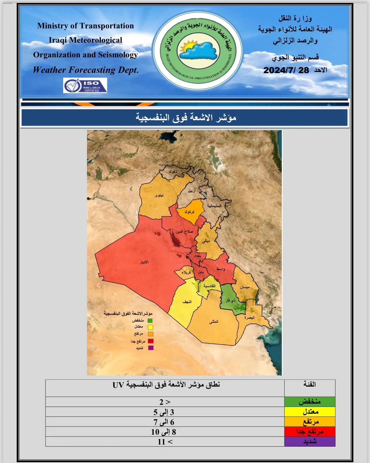 محلياتمرتفعة بخمس محافظات ومعتدلة باثنتين آخرتين.. الرشيد تنشر مؤشر الأشعة فوق البنفسجية بالعراق قبل سنة واحدة 8 مشاهدات شارك العمل الدولية تدعو العراق لتحديد ساعات العمل لمواجهة الارتفاع الكبير بدرجات الحرارة مرتفعة بخمس محافظات ومعتدلة باثنتين آخرتين.. الرشيد تنشر مؤشر الأشعة فوق البنفسجية بالعراق مرتفعة بخمس محافظات ومعتدلة باثنتين آخرتين.. الرشيد تنشر مؤشر الأشعة فوق البنفسجية بالعراق الوسومالأشعة فوق البنفسجيةالرشيدالعراققد يهمك أيضا أمن مقتل شاب برصاصة أطلقها منتسب أمني بالخطأ خلال "مشاجرة اعتيادية" في أبي غريب غربي بغداد قبل 3 ساعات 8 مشاهدات رياضة مدرب الأرجنتين معلقاً على قرعة المونديال: منتخب الجزائر قوي والأردن مجهول بالنسبة لي قبل 3 ساعات 16 مشاهدات محليات العراق يستقبل موجة أمطار غزيرة.. الأنواء تحذر من سيول وفيضانات في المناطق غير المخدومة اعتباراً من الغد قبل 3 ساعات 16 مشاهدات محليات المالية تنفي استقبال نائبة للتفاوض مع وزيرتها بشأن مستحقات المقاولين قبل 4 ساعات 10 مشاهدات عربي ودولي البيت الأبيض يحذر: أوروبا مهددة بـ"زوال الحضارة" خلال 20 عاماً قبل 4 ساعات 9 مشاهدات