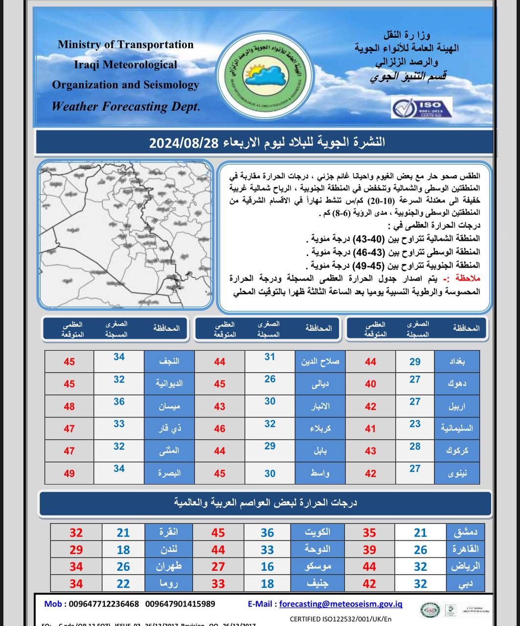 طقس العراق.. غبار وانخفاض بدرجات الحرارة خلال الايام المقبلة