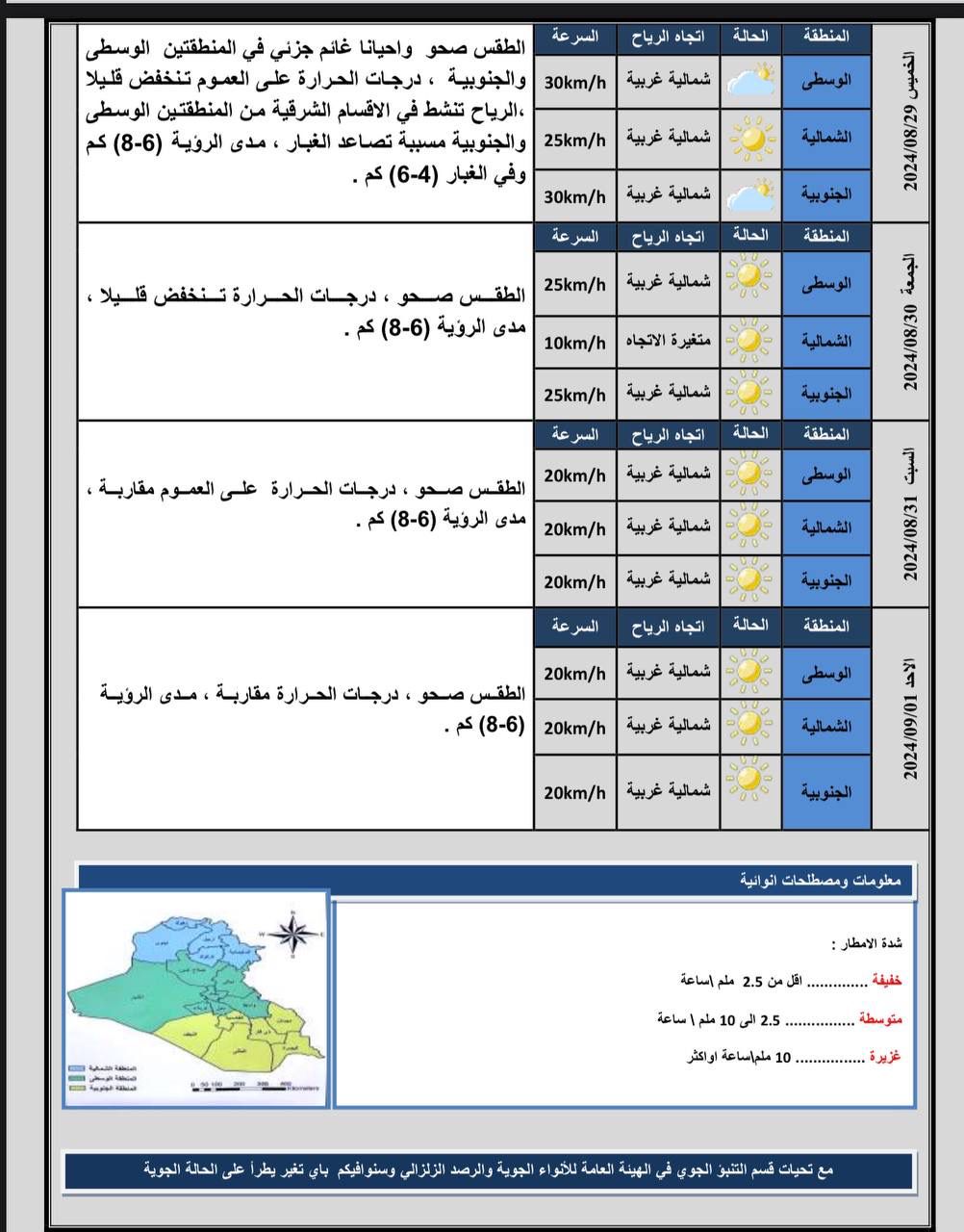 طقس العراق.. غبار وانخفاض بدرجات الحرارة خلال الايام المقبلة قبل سنة واحدة شارك طقس العراق.. غبار وانخفاض بدرجات الحرارة خلال الايام المقبلة