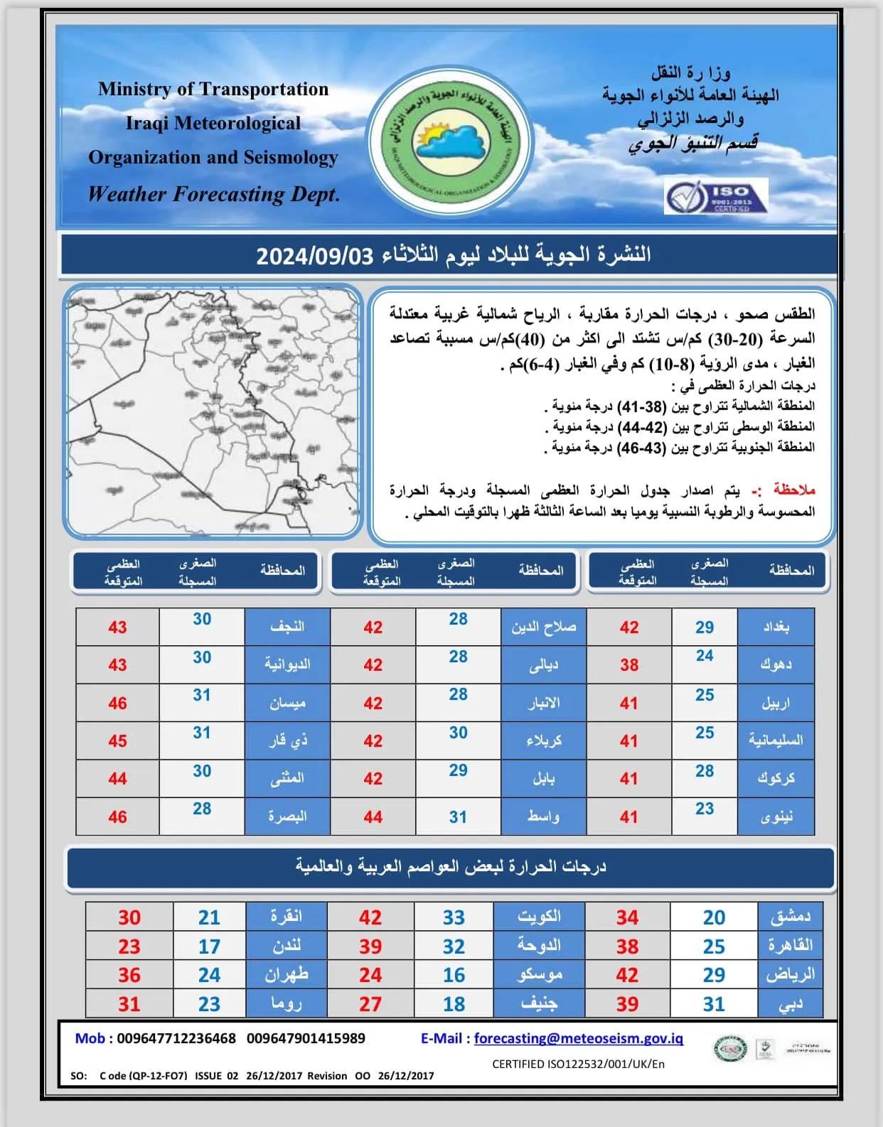 طقس العراق.. ثلاث محافظات تسجل درجات حرارة ثلاثينية يوم غد قبل سنة واحدة شارك طقس العراق.. ثلاث محافظات تسجل درجات حرارة ثلاثينية يوم غد