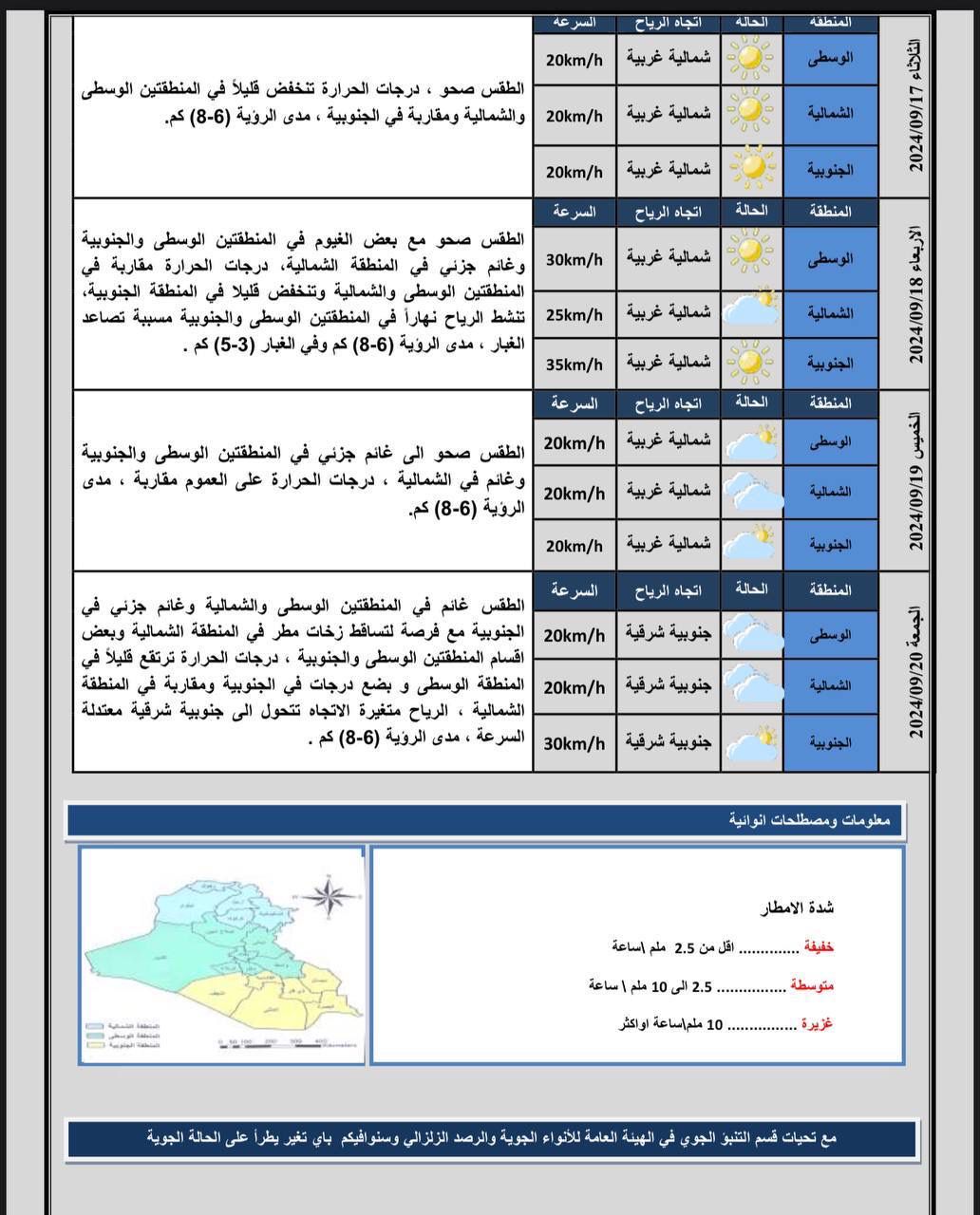 طقس العراق.. ‏فرصة لهطول الأمطار وإنخفاض بدرجات الحرارة خلال الأيام المقبلة