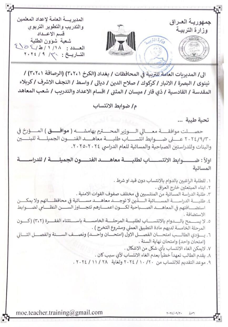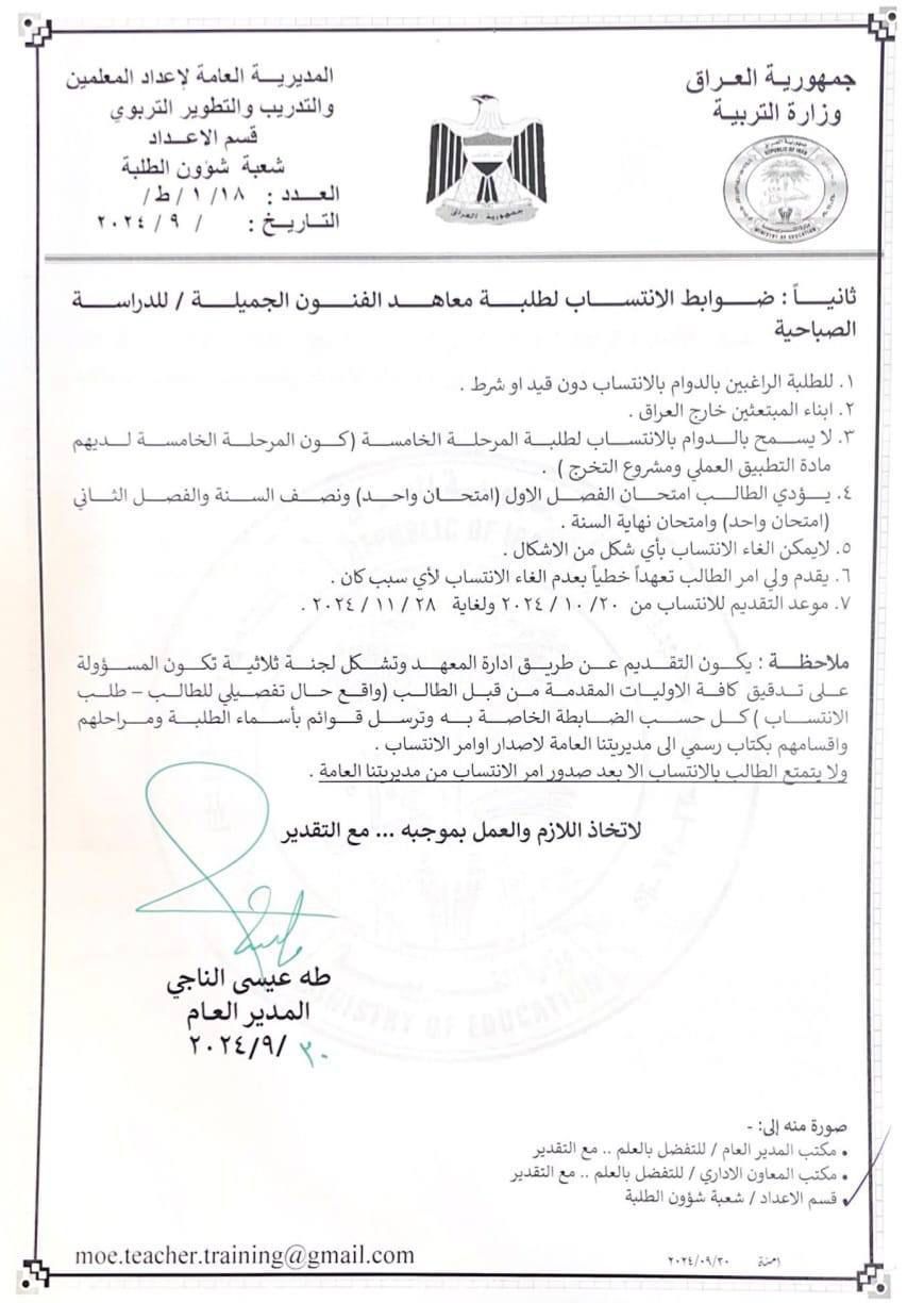 محلياتالتربية تُعلن ضوابط وتعليمات الانتساب لطلبة معاهد الفنون الجميلة قبل سنة واحدة 5 مشاهدات شارك وزارة التربية التربية تُعلن ضوابط وتعليمات الانتساب لطلبة معاهد الفنون الجميلة التربية تُعلن ضوابط وتعليمات الانتساب لطلبة معاهد الفنون الجميلة الوسومالتربيةالفنون الجميلةضوابطمعاهد الفنون الجميلةقد يهمك أيضا رياضة "توالي الأزمات".. ليفربول يوجه ضربة قوية لمحمد صلاح ويقرر بيعه قبل 26 دقيقة 5 مشاهدات عربي ودولي الرئيس اللبناني يطالب مجلس الأمن بالضغط على إسرائيل لتطبيق وقف إطلاق النار قبل 37 دقيقة 5 مشاهدات عربي ودولي موسكو: قد يتم عقد لقاء بين بوتين وترامب في القريب العاجل قبل 55 دقيقة 7 مشاهدات محليات العدل تعلن إطلاق سراح 761 نزيلاً خلال تشرين الثاني قبل ساعة واحدة 11 مشاهدات عربي ودولي ارتفاع عدد ضحايا الفيضانات والانهيارات الأرضية في إندونيسيا إلى 846 قبل ساعتين 12 مشاهدات
