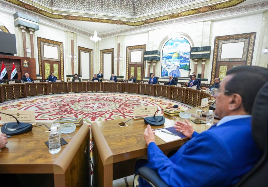 وأكد الاجتماع وحدة الموقف العراقي وصفوف القوى السياسية، ومساندة المسار الثابت والمبدئي الذي تتبناه الحكومة العراقية إزاء القضية الفلسطينية، والحق التاريخي لشعبنا الفلسطيني في أرضه، مثمناً الجهود التي يبذلها رئيس مجلس الوزراء في التواصل مع قادة المنطقة والعالم من أجل وضع الحلول.