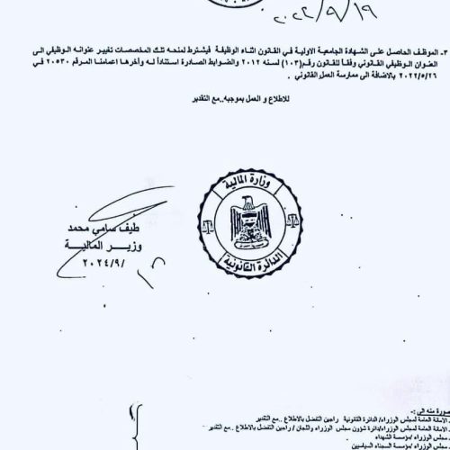 أقتصادالمالية تصدر إعماما بشأن احتساب مخصصات الخطورة المهنية للموظفين الحقوقيين قبل سنة واحدة 68 مشاهدات شارك المالية تصدر إعماما بشأن احتساب مخصصات الخطورة المهنية للموظفين الحقوقيين المالية تصدر إعماما بشأن احتساب مخصصات الخطورة المهنية للموظفين الحقوقيين المالية تصدر إعماما بشأن احتساب مخصصات الخطورة المهنية للموظفين الحقوقيين الوسومالماليةمخصصات الخطورةقد يهمك أيضا سياسة المجلس السياسي الوطني يعلن الاتفاق على آليات تسهل حسم اختيار رئيس مجلس النواب قبل 50 دقيقة 3 مشاهدات الحكم الرابع الـVAR يتلاعب بدورينا .. تفاصيل صادمة في الحكم الرابع قبل ساعة واحدة 5 مشاهدات عربي ودولي الحكومة الليبية تعلن مقتل رئيس الأركان محمد الحداد ومرافقيه اثر تحطم طائرتهم في أنقرة قبل ساعة واحدة 16 مشاهدات عربي ودولي مقتل رئيس الأركان الليبي "محمد الحداد" ومرافقيه بتحطم طائرتهم أثناء عودتهم من أنقرة قبل ساعة واحدة 15 مشاهدات عربي ودولي وسائل إعلام تركية: العثور على حطام طائرة رئيس الاركان الليبي التي سقطت بعد إقلاعها من أنقرة قبل ساعة واحدة 8 مشاهدات