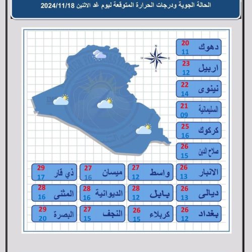 قراءة: طقس العراق.. انخفاض بدرجات الحرارة وتساقط أمطار في الشمال خلال الأيام المقبلة