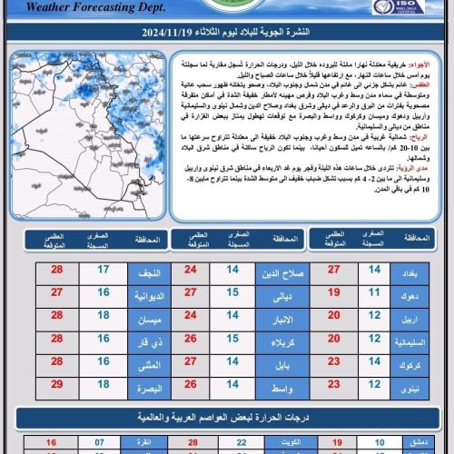الوسومأمطارانخفاض بدرجات الحرارةدرجات الحرارةطقس العراق