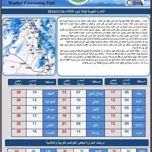 طقس العراق.. أمطار وضباب وانخفاض بدرجات الحرارة خلال الأيام المقبلة