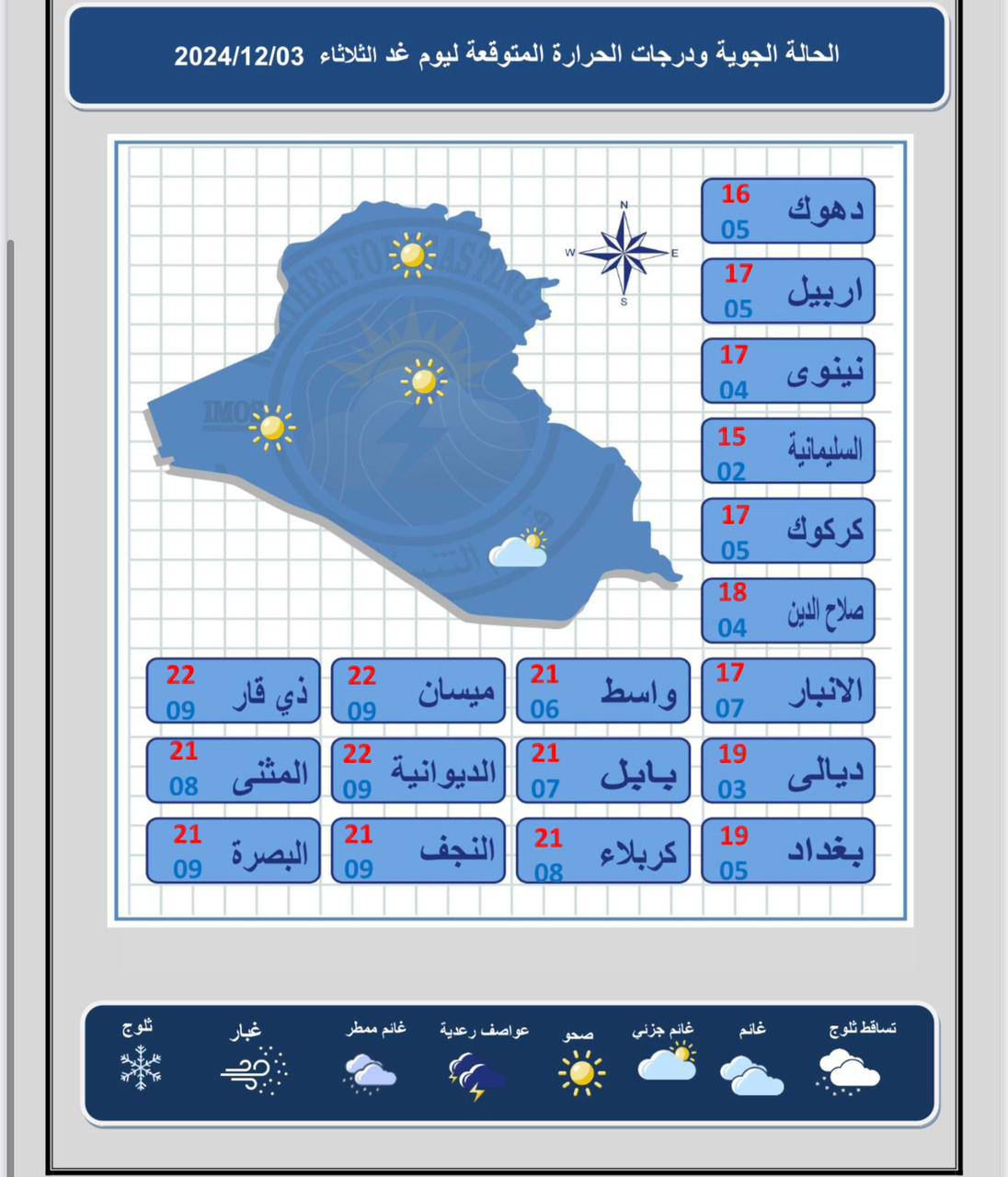 طقس العراق.. غيوم متفرقة وارتفاع بدرجات الحرارة اعتباراً من الغد قبل سنة واحدة شارك طقس العراق.. غيوم متفرقة وارتفاع بدرجات الحرارة اعتباراً من الغد
