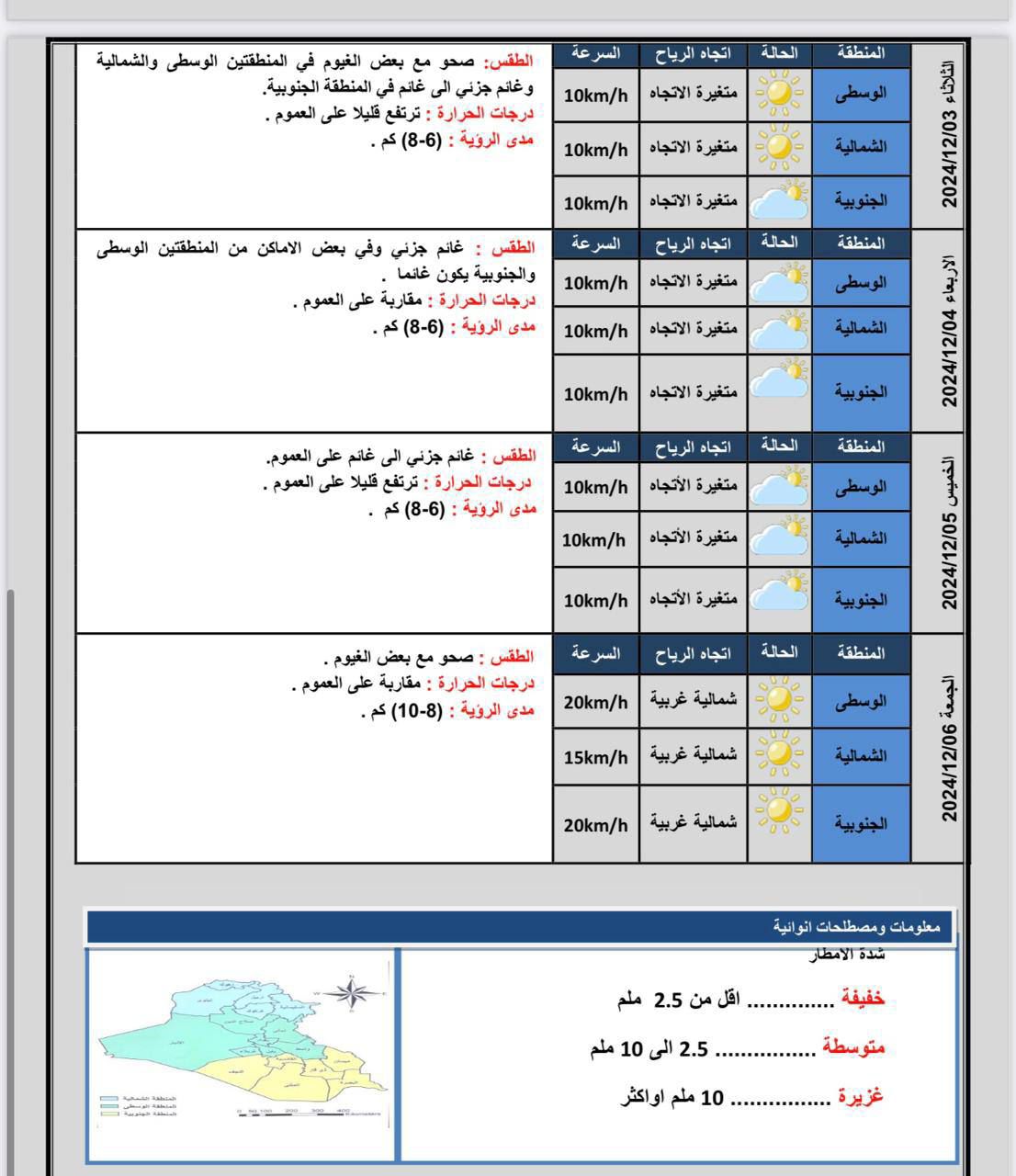 طقس العراق.. غيوم متفرقة وارتفاع بدرجات الحرارة اعتباراً من الغد