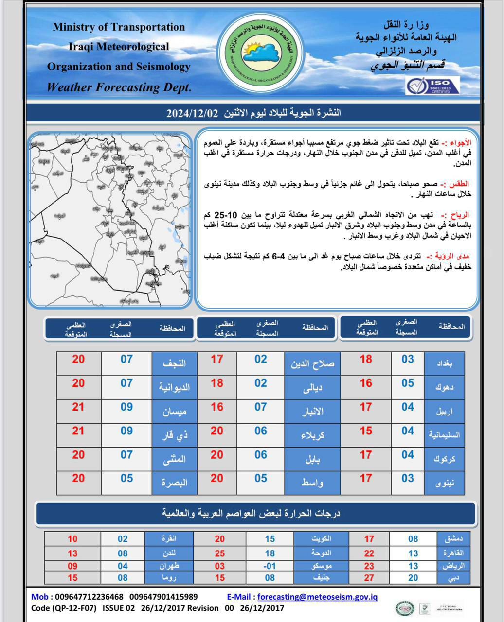 طقس العراق.. غيوم متفرقة وارتفاع بدرجات الحرارة اعتباراً من الغد