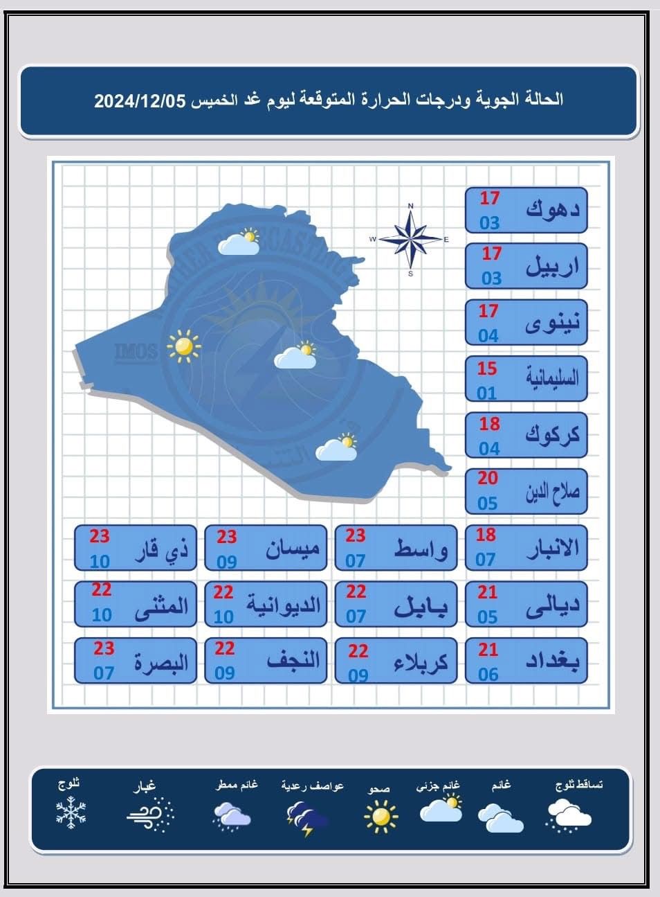 طقس العراق.. غائم جزئي وحرارة غير مستقرة خلال الأيام المقبلة قبل سنة واحدة شارك طقس العراق.. غائم جزئي وحرارة غير مستقرة خلال الأيام المقبلة