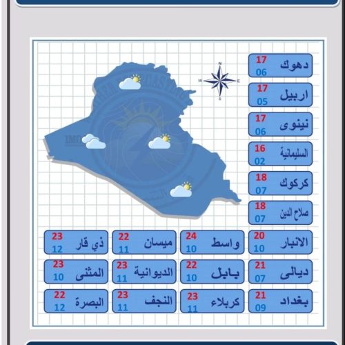 طقس العراق… غيوم وأمطار متفرقة وارتفاع بدرجات الحرارة خلال الأيام المقبلة