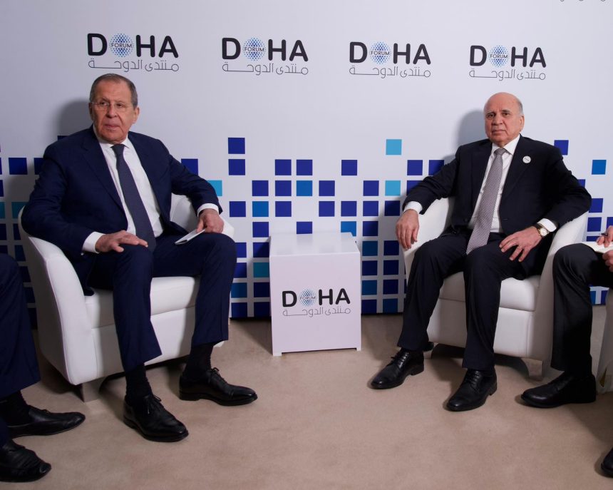 وذكرت وزارة الخارجية، في بيان تلقته الرشيد، أن “نائب رئيس مجلس الوزراء ووزير الخارجية، فؤاد حسين التقى اليوم، مع وزير الخارجية الروسي، سيرجي لافروف، في العاصمة القطرية الدوحة”.