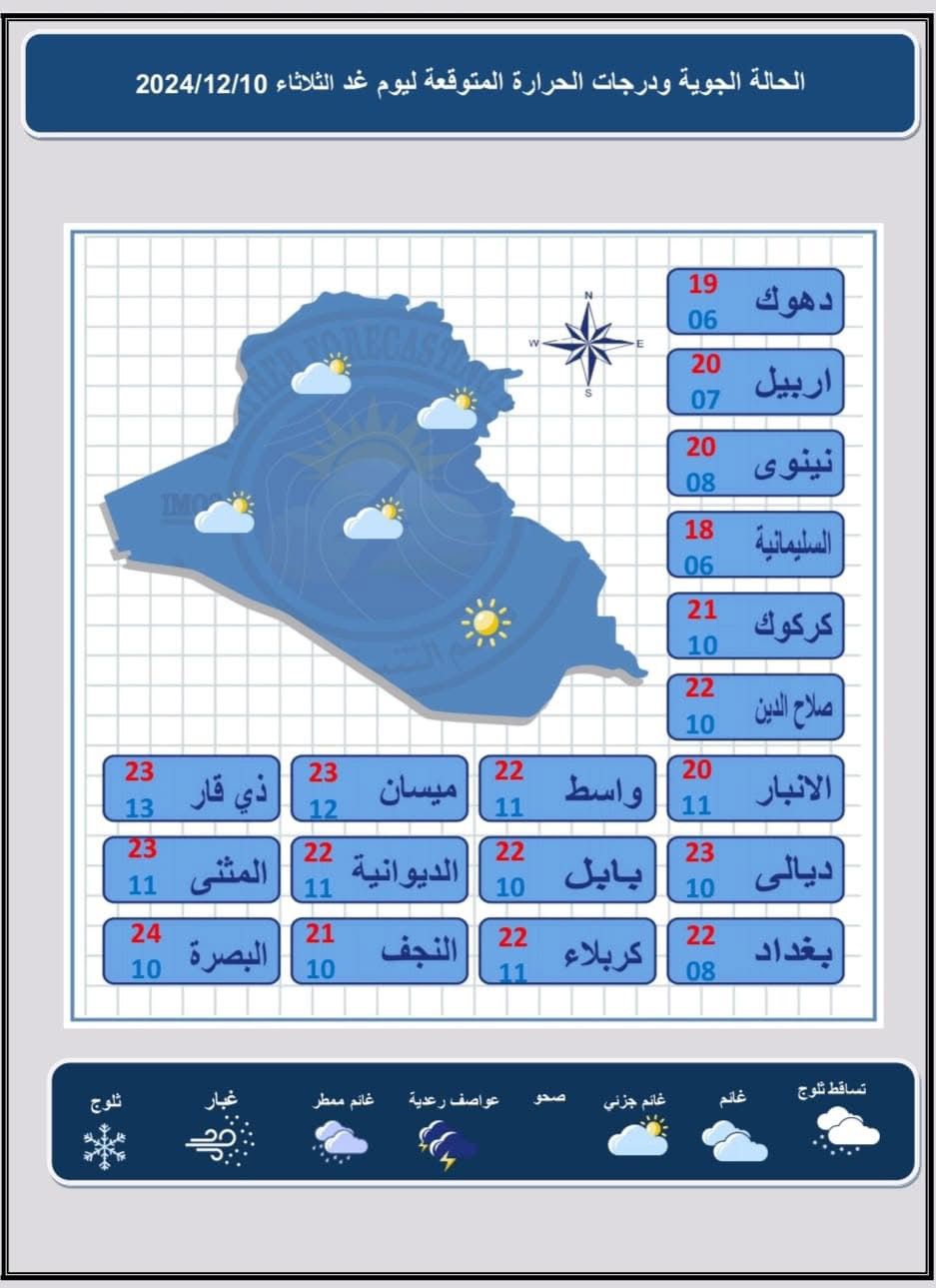 طقس العراق.. غيوم متفرقة وانخفاض بدرجات الحرارة خلال الأيام المقبلة قبل سنة واحدة شارك طقس العراق.. غيوم متفرقة وانخفاض بدرجات الحرارة خلال الأيام المقبلة