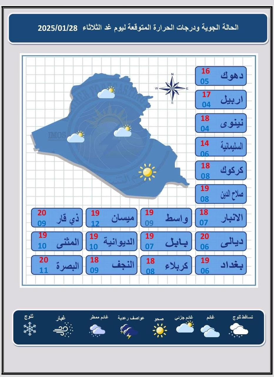 طقس العراق.. ارتفاع درجات الحرارة وتصاعد الغبار خلال الأيام الأربعة المقبلة قبل 11 شهر شارك طقس العراق.. ارتفاع درجات الحرارة وتصاعد الغبار خلال الأيام الأربعة المقبلة