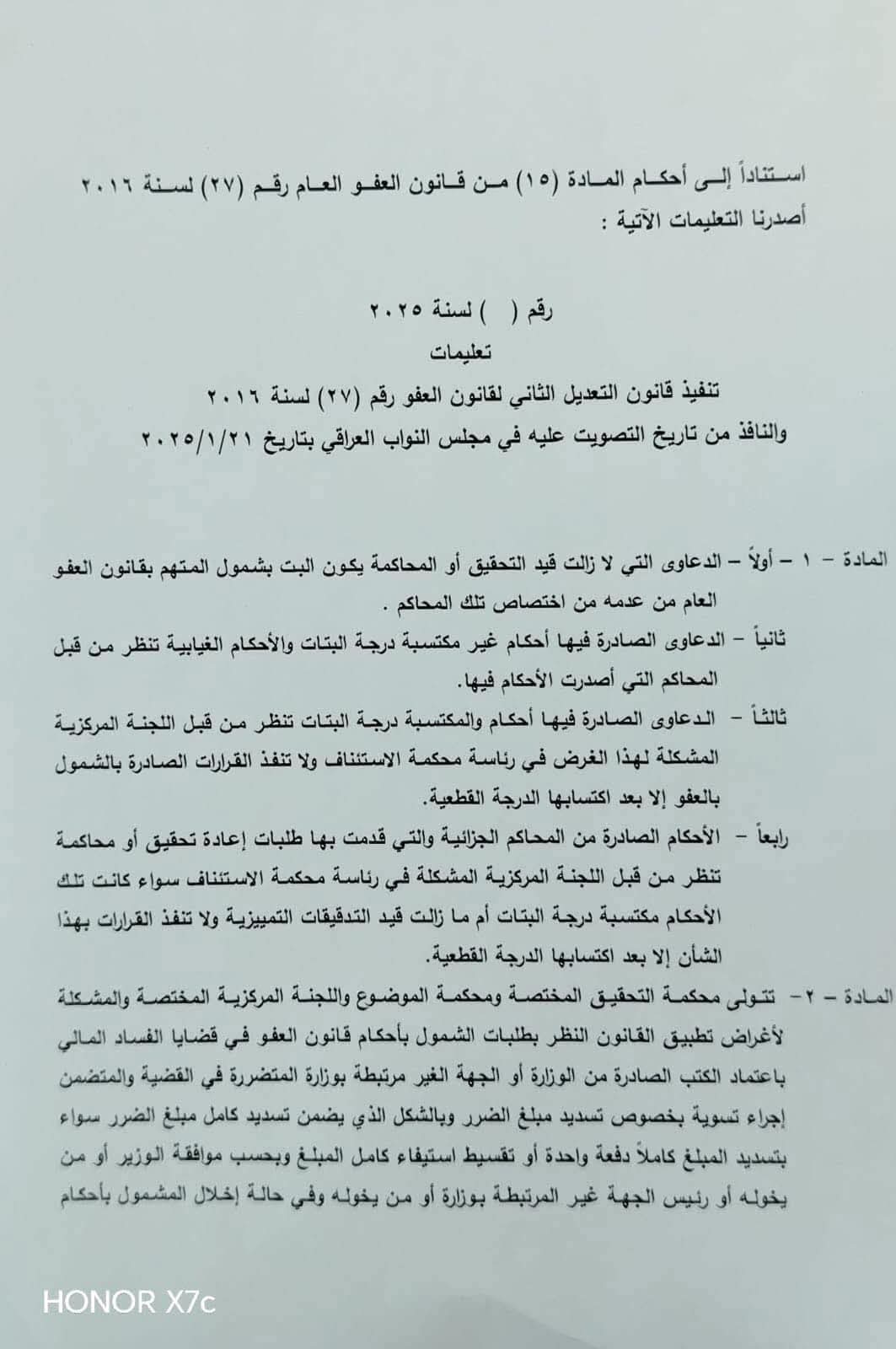 مجلس القضاء الأعلى يعمم تعليمات قانون العفو العام قبل 10 أشهر شارك مجلس القضاء الأعلى يعمم تعليمات قانون العفو العام