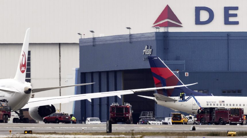 Moment a Japan Airlines plane clips tail of Delta jet at Seattle-Tacoma International Airport