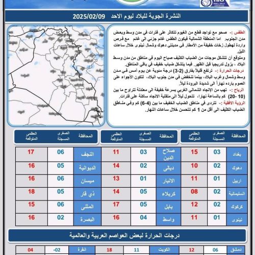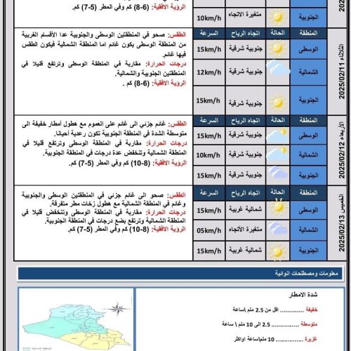 طقس العراق.. أمطار متفرقة وارتفاع درجات الحرارة خلال الأيام المقبلة طقس العراق.. أمطار متفرقة وارتفاع درجات الحرارة خلال الأيام المقبلة طقس العراق.. أمطار متفرقة وارتفاع درجات الحرارة خلال الأيام المقبلة أعلنت هيئة الأنواء الجوية، حالة طقس العراق خلال الأيام المقبلة، فيما أشارت إلى أمطار متفرقة وارتفاع درجات الحرارة.