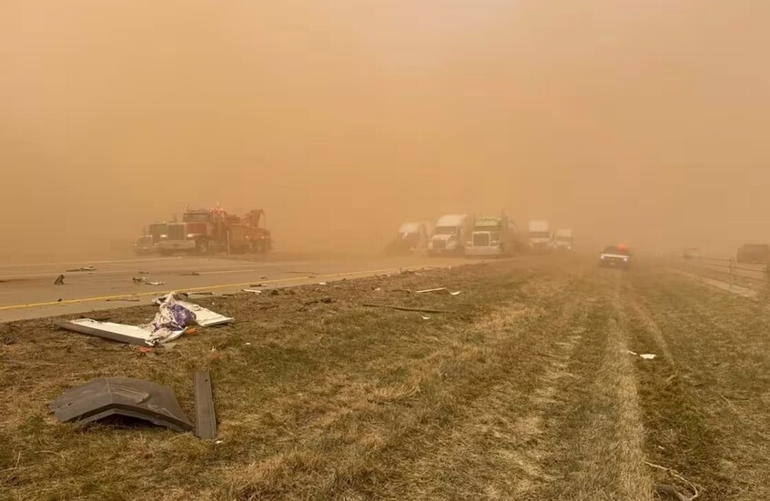 وأفادت إدارة الإطفاء والإنقاذ في مقاطعة بوتر بإغلاق أو تقييد حركة المرور على 4 طرق بعد حوادث منفصلة انقلبت فيها شاحنات كبيرة، مشيرة إلى أن "الرؤية ضعيفة في أحسن الأحوال، ومنعدمة تماما في بعض الأماكن.