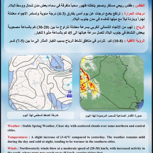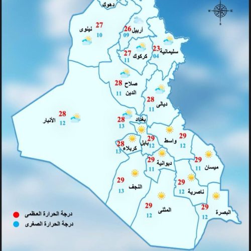 طقس العراق.. صحو وارتفاع بدرجات الحرارة خلال الأيام المقبلة طقس العراق.. صحو وارتفاع بدرجات الحرارة خلال الأيام المقبلة طقس العراق.. صحو وارتفاع بدرجات الحرارة خلال الأيام المقبلة طقس العراق.. صحو وارتفاع بدرجات الحرارة خلال الأيام المقبلة أعلنت هيئة الأنواء الجوية، اليوم الثلاثاء، عن تفاصيل حالة الطقس في البلاد للأيام المقبلة، فيما توقعت أجواء صحوة وارتفاعاً في درجات الحرارة.