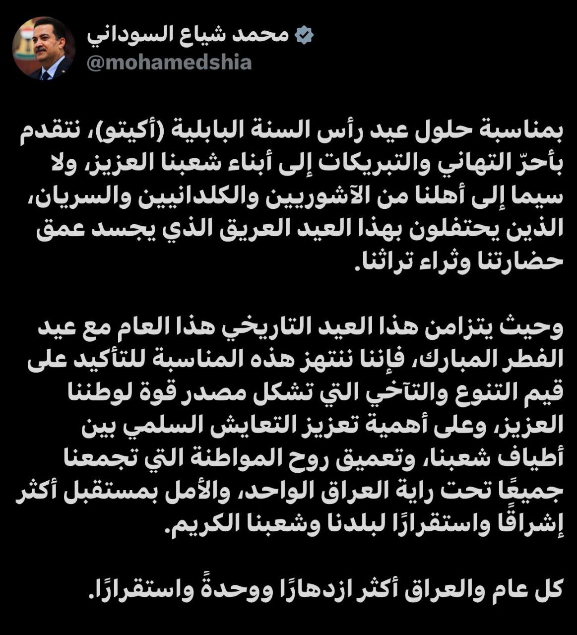 محلياتالسوداني يهنئ بحلول عيد (أكيتو) ويؤكد أهمية تعزيز التعايش السلمي بين أطياف الشعب قبل 8 أشهر 18 مشاهدات شارك السودانيالسوداني يهنئ بحلول عيد (أكيتو) ويؤكد أهمية تعزيز التعايش السلمي بين أطياف الشعب الوسومالتعايش السلميالسودانيالشعبقد يهمك أيضا رياضة قرعة المونديال تسفر عن مواجهة عربية بين الأردن والجزائر قبل 5 دقائق 2 مشاهدات رياضة قرعة المونديال تضع الفائز من مباراة الملحق العالمي لمنتخبنا إلى جانب فرنسا والنرويج والسنغال قبل 10 دقائق 2 مشاهدات رياضة منتخب المغرب يقع في مجموعة البرازيل وانجلترا تصطدم بكرواتيا في قرعة المونديال قبل 30 دقيقة 6 مشاهدات رياضة حدث تاريخي.. 3 رؤساء دول يشاركون في سحب قرعة المونديال قبل 43 دقيقة 5 مشاهدات عربي ودولي قرار جديد من مجموعة السبع والاتحاد الأوروبي: فرض حظر كامل على النفط الروسي قبل 57 دقيقة 6 مشاهدات