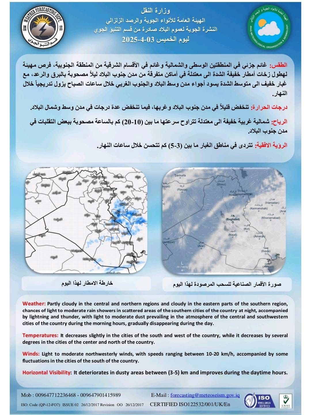 طقس العراق.. أمطار رعدية وارتفاع درجات الحرارة خلال الأيام المقبلة قبل 9 أشهر شارك طقس العراق.. أمطار رعدية وارتفاع درجات الحرارة خلال الأيام المقبلة
