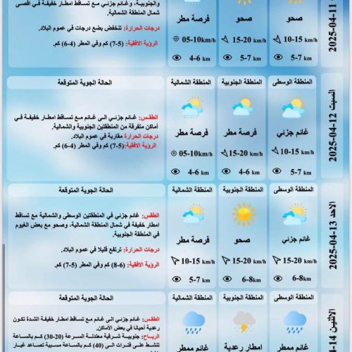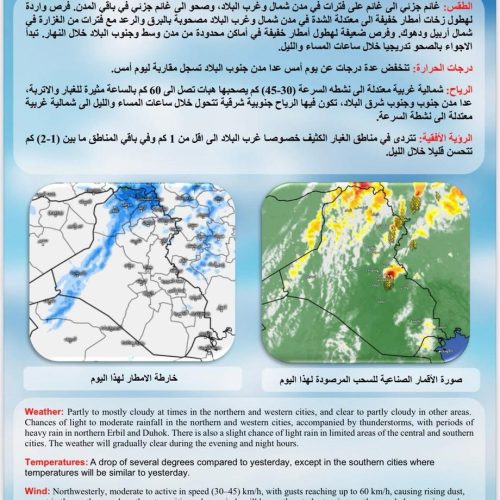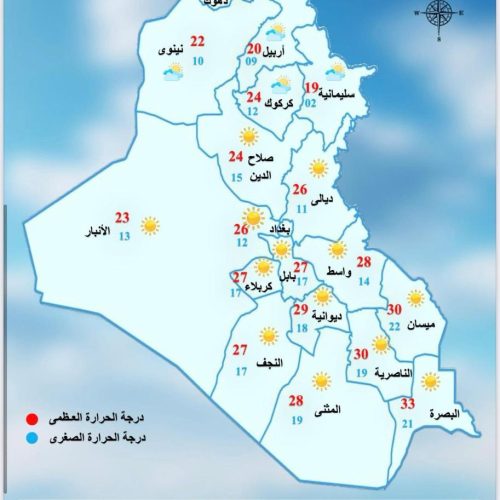 طقس العراق.. أمطار متفرقة وانخفاض في درجات الحرارة خلال الأيام المقبلة طقس العراق.. أمطار متفرقة وانخفاض في درجات الحرارة خلال الأيام المقبلة طقس العراق.. أمطار متفرقة وانخفاض في درجات الحرارة خلال الأيام المقبلة طقس العراق.. أمطار متفرقة وانخفاض في درجات الحرارة خلال الأيام المقبلة أعلنت هيئة الأنواء الجوية اليوم الخميس حالة الطقس للأيام المقبلة، وذكرت في بيانها أن “يكون هناك أمطار متفرقة وانخفاض في درجات الحرارة”.