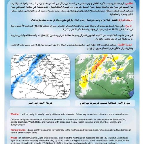 طقس العراق.. أمطار وانخفاض بدرجات الحرارة خلال الأيام المقبلة طقس العراق.. أمطار وانخفاض بدرجات الحرارة خلال الأيام المقبلة طقس العراق.. أمطار وانخفاض بدرجات الحرارة خلال الأيام المقبلة طقس العراق.. أمطار وانخفاض بدرجات الحرارة خلال الأيام المقبلة أعلنت هيئة الأنواء الجوية اليوم الإثنين عن حالة الطقس المتوقعة في العراق خلال الأيام المقبلة، مشيرةً إلى انخفاض درجات الحرارة وهطول الأمطار.