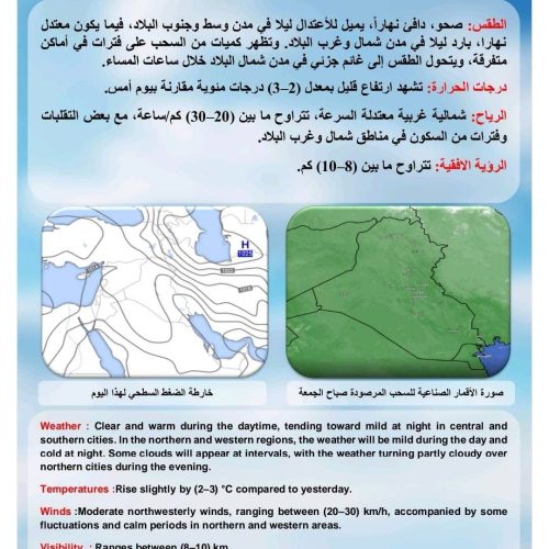 طقس العراق.. ارتفاع درجات الحرارة وتصاعد الغبار خلال الأيام المقبلة طقس العراق.. ارتفاع درجات الحرارة وتصاعد الغبار خلال الأيام المقبلة طقس العراق.. ارتفاع درجات الحرارة وتصاعد الغبار خلال الأيام المقبلة طقس العراق.. ارتفاع درجات الحرارة وتصاعد الغبار خلال الأيام المقبلة أعلنت هيئة الأنواء الجوية، اليوم السبت، عن تفاصيل حالة الطقس في البلاد للأيام المقبلة، فيما توقعت تصاعداً للغبار وارتفاعاً في درجات الحرارة.