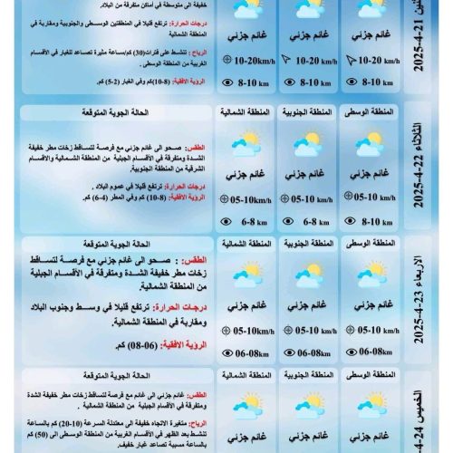 فيما توقعت الهيئة، غبار واستمرار بارتفاع درجات الحرارة
