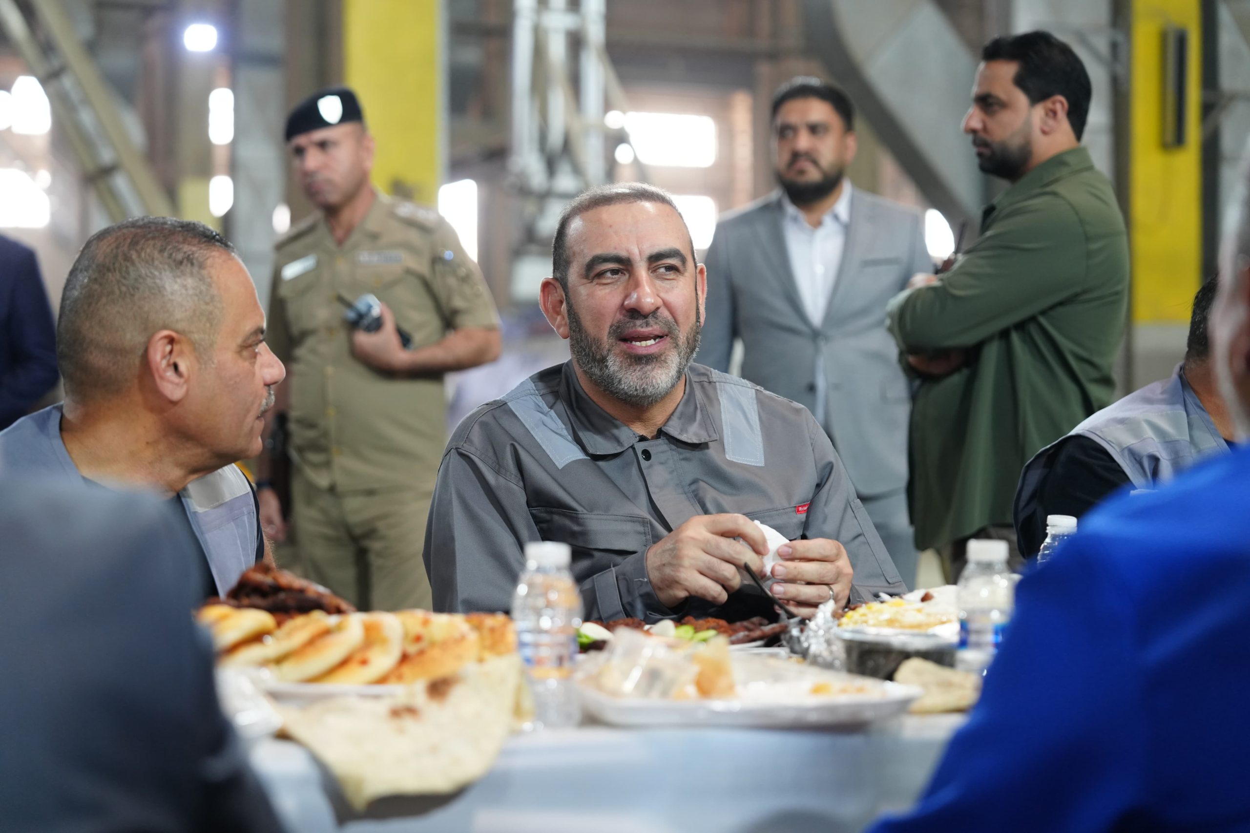 وفي لفتة إنسانية تعبّر عن روح التضامن والتقدير، شارك الوزير عمال الشركة وجبة الإفطار في موقع عملهم ، مرتديا بدلة العمل، في مبادرة جاءت تعبيرا صادقا عن الامتنان لجهودهم المتواصلة، وعرفانا لما يقدمونه من عطاء في سبيل بناء مستقبل الصناعة العراقية.
