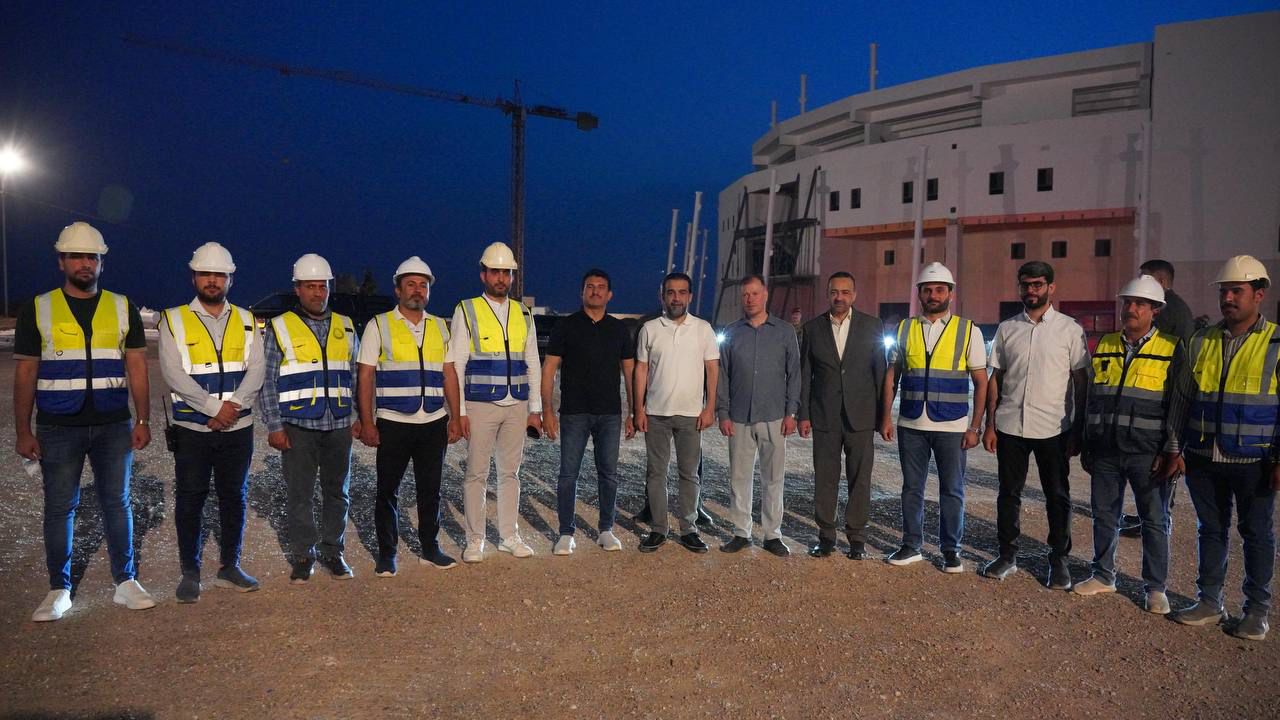 رئيس حزب تقدم الرئيس محمد الحلبوسي يزور مشروع ملعب الأنبار الأولمبي سعة (30) ألف متفرج، ومشروع فندق الأنبار الدولي؛ للاطلاع ميدانياً على سير الأعمال في المشروع ونسب الإنجاز.