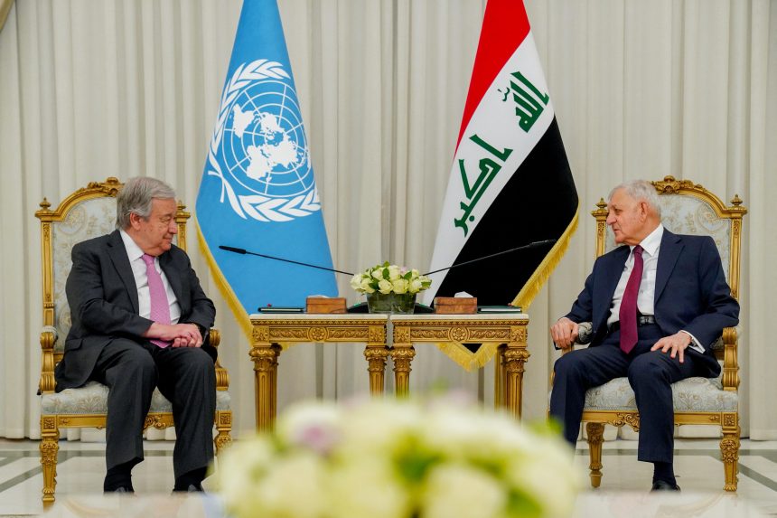 بدوره، أكد الأمين العام للأمم المتحدة، أنطونيو غوتيريش أهمية الدور الحيوي للعراق ومساعيه لتحقيق الأمن والاستقرار في المنطقة، معربا عن شكره وتقديره لرئيس الجمهورية، وسعادته لزيارة العراق ودعوته للمشاركة في مؤتمر القمة العربية ببغداد.