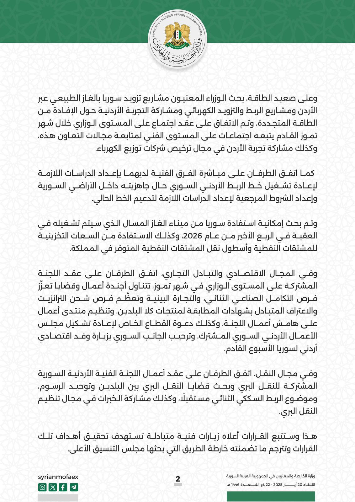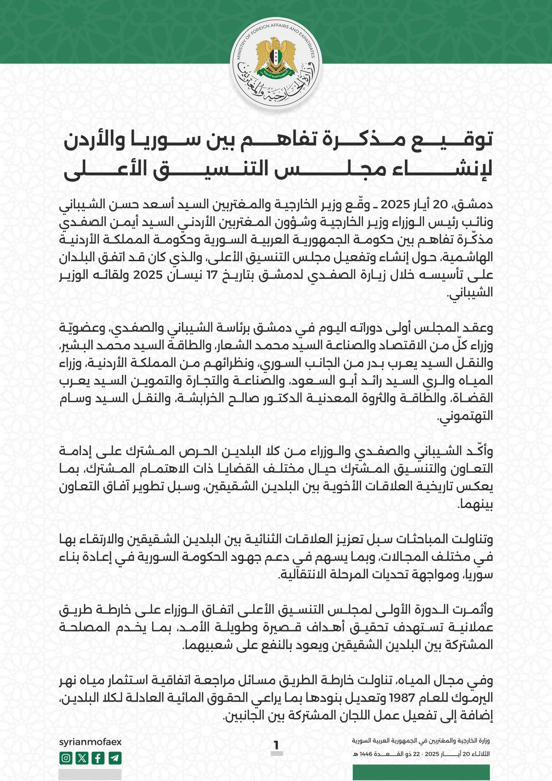 عربي ودوليسوريا والأردن توقعان مذكرة تفاهم لإنشاء مجلس التنسيق الأعلى قبل 7 أشهر 7 مشاهدات شارك سوريا والأردن توقعان مذكرة تفاهم لإنشاء مجلس التنسيق الأعلى سوريا والأردن توقعان مذكرة تفاهم لإنشاء مجلس التنسيق الأعلى سوريا والأردن توقعان مذكرة تفاهم لإنشاء مجلس التنسيق الأعلى الوسوممجلسمذكرة تفاهمقد يهمك أيضا رياضة "توالي الأزمات".. ليفربول يوجه ضربة قوية لمحمد صلاح ويقرر بيعه قبل 13 دقيقة 3 مشاهدات عربي ودولي الرئيس اللبناني يطالب مجلس الأمن بالضغط على إسرائيل لتطبيق وقف إطلاق النار قبل 24 دقيقة 5 مشاهدات عربي ودولي موسكو: قد يتم عقد لقاء بين بوتين وترامب في القريب العاجل قبل 42 دقيقة 7 مشاهدات محليات العدل تعلن إطلاق سراح 761 نزيلاً خلال تشرين الثاني قبل 59 دقيقة 9 مشاهدات عربي ودولي ارتفاع عدد ضحايا الفيضانات والانهيارات الأرضية في إندونيسيا إلى 846 قبل ساعة واحدة 10 مشاهدات