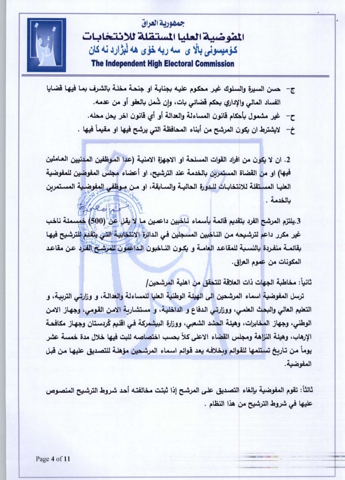 قراءة: بالوثائق.. المفوضية تعلن تعليمات الترشح للانتخابات النيابية المقبلة