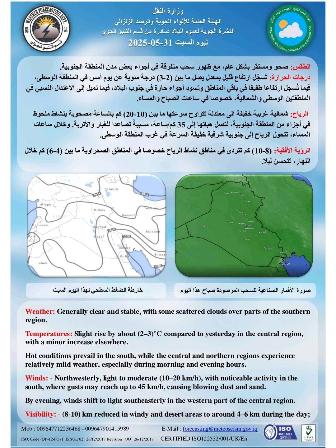 طقس العراق.. غبار وانخفاض درجات الحرارة خلال الأيام المقبلة قبل 8 أشهر شارك طقس العراق.. غبار وانخفاض درجات الحرارة خلال الأيام المقبلة