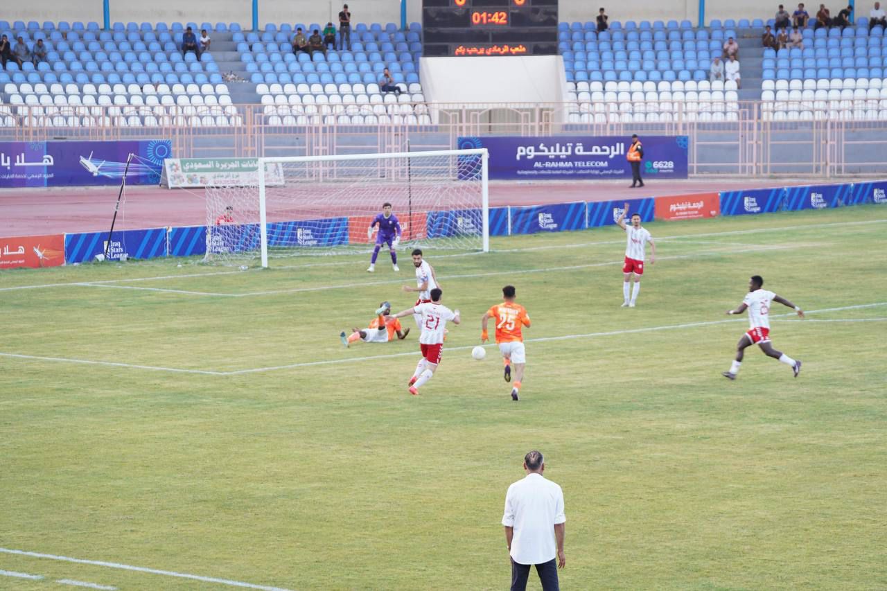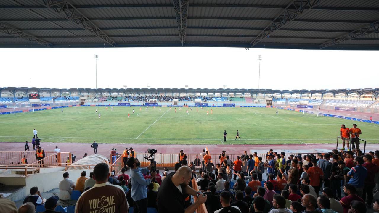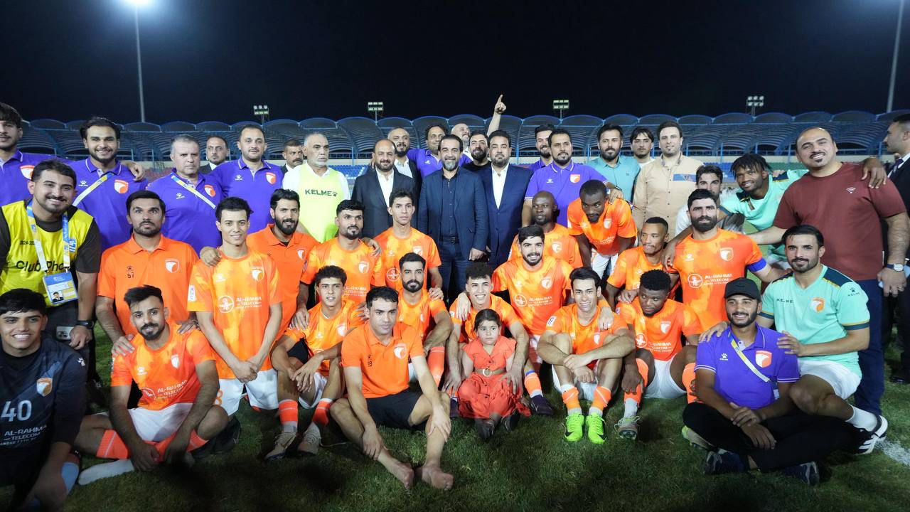 جانب من حضور رئيس حزب تقدم الرئيس محمد الحلبوسي، يرافقه محافظ الأنبار ورئيس مجلس المحافظة، مباراة نادي الكرمة وزاخو على معلب نادي الرمادي.