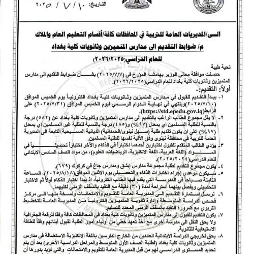 محلياتالتربية تحدد 10 تموز موعداً للتقديم لمدارس المتميزين والمتفوقين وثانويات كلية بغداد قبل 5 أشهر 26 مشاهدات شارك التربية تحدد 10 تموز موعداً للتقديم لمدارس المتميزين والمتفوقين وثانويات كلية بغداد التربية تحدد 10 تموز موعداً للتقديم لمدارس المتميزين والمتفوقين وثانويات كلية بغداد التربية تحدد 10 تموز موعداً للتقديم لمدارس المتميزين والمتفوقين وثانويات كلية بغداد التربية تحدد 10 تموز موعداً للتقديم لمدارس المتميزين والمتفوقين وثانويات كلية بغداد التربية تحدد 10 تموز موعداً للتقديم لمدارس المتميزين والمتفوقين وثانويات كلية بغداد الوسومالتربيةتموزثانويات كلية بغدادمدارس المتميزينقد يهمك أيضا عربي ودولي سانا: تعرض قوات سورية أمريكية لإطلاق نار قرب مدينة تدمر أثناء تنفيذ جولة مشتركة قبل 17 دقيقة 2 مشاهدات أقتصاد ارتفاع أسعار صرف الدولار مقابل الدينار العراقي مع الاغلاق قبل 19 دقيقة 2 مشاهدات عربي ودولي لجنة أممية تصل إلى القنيطرة لتوثيق الانتهاكات الإسرائيلية قبل ساعة واحدة 7 مشاهدات عربي ودولي مصدر سوري: إصابة عناصر من القوات الأمريكية والأمن العام بإطلاق نار قرب تدمر قبل ساعة واحدة 7 مشاهدات رياضة فوضى ومقذوفات وتحطيم مقاعد.. قدوم ميسي يدفع الجماهير الهندية إلى تخريب ملعب كالكوتا قبل ساعتين 8 مشاهدات