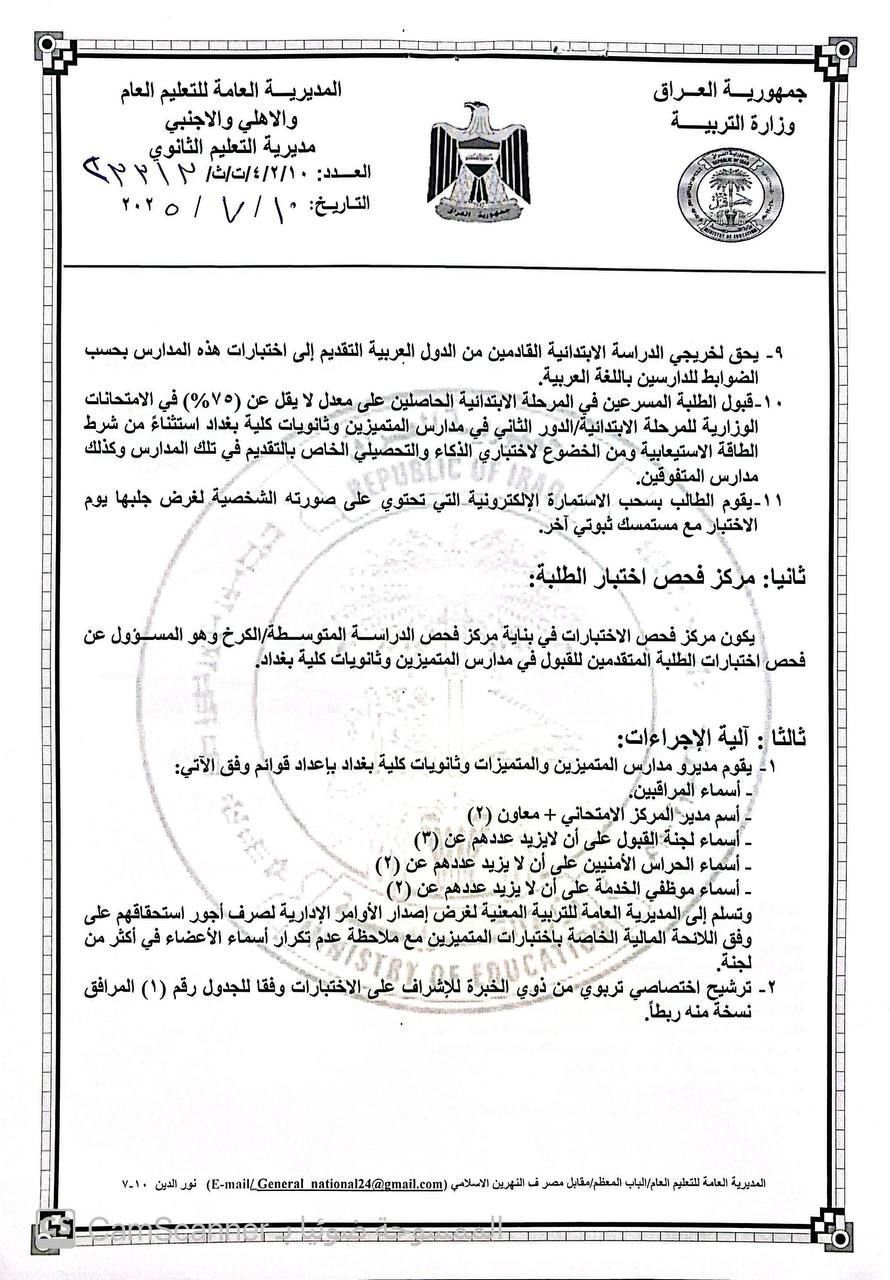 التربية تحدد 10 تموز موعداً للتقديم لمدارس المتميزين والمتفوقين وثانويات كلية بغداد
