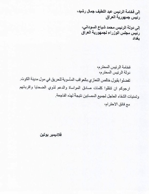 سياسةبوتين يعزي بضحايا فاجعة الكوت قبل 5 أشهر 63 مشاهدات شارك بوتينبوتين يعزي بضحايا فاجعة الكوت الوسومالكوتبوتينقد يهمك أيضا أمن مقتل شاب برصاصة أطلقها منتسب أمني بالخطأ خلال "مشاجرة اعتيادية" في أبي غريب غربي بغداد قبل 7 ساعات 9 مشاهدات رياضة مدرب الأرجنتين معلقاً على قرعة المونديال: منتخب الجزائر قوي والأردن مجهول بالنسبة لي قبل 7 ساعات 18 مشاهدات محليات العراق يستقبل موجة أمطار غزيرة.. الأنواء تحذر من سيول وفيضانات في المناطق غير المخدومة اعتباراً من الغد قبل 8 ساعات 17 مشاهدات محليات المالية تنفي استقبال نائبة للتفاوض مع وزيرتها بشأن مستحقات المقاولين قبل 8 ساعات 10 مشاهدات عربي ودولي البيت الأبيض يحذر: أوروبا مهددة بـ"زوال الحضارة" خلال 20 عاماً قبل 8 ساعات 10 مشاهدات
