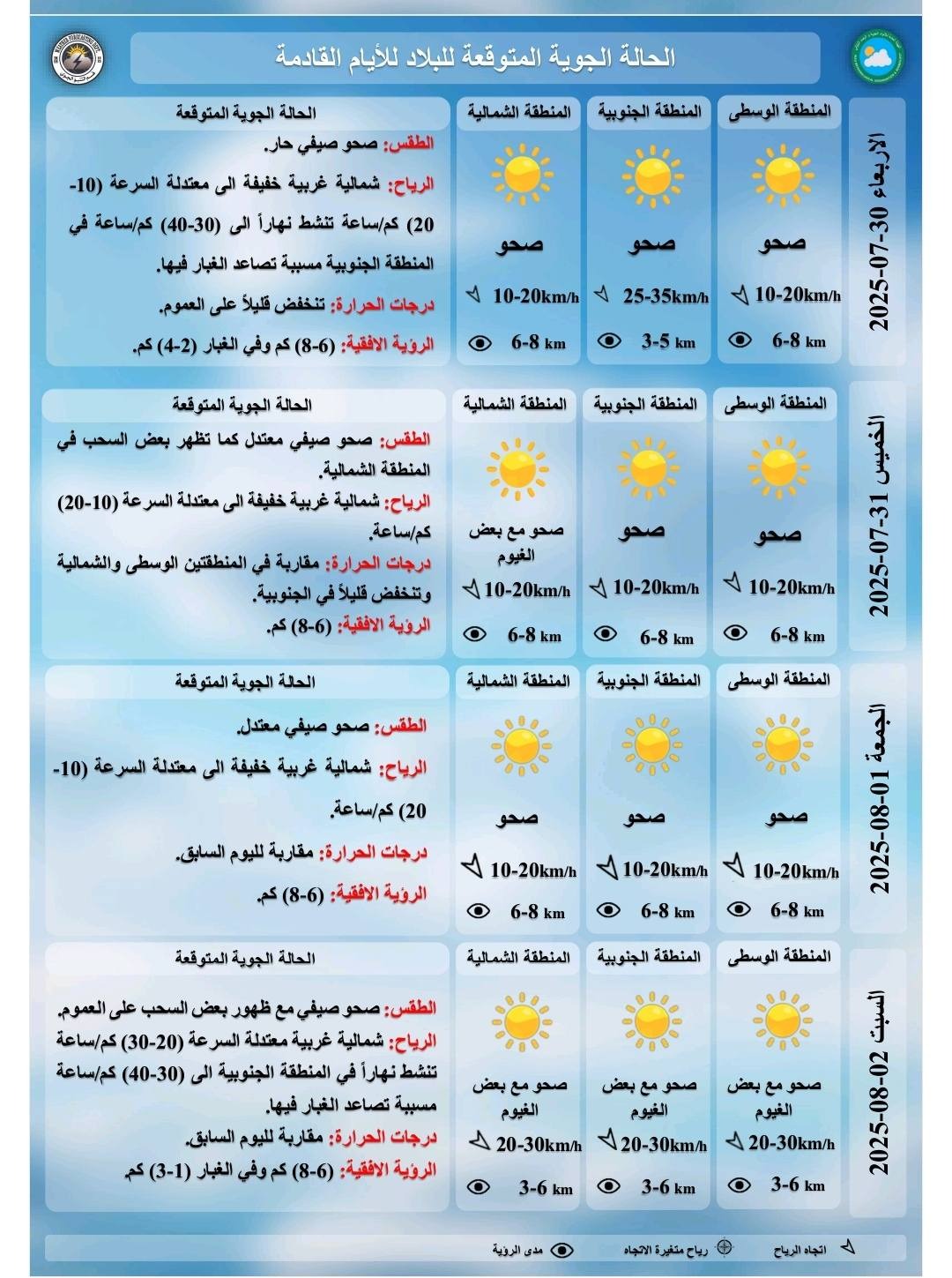 طقس العراق.. تصاعد الغبار وثلاث محافظات تسجل نصف درجة الغليان يوم غد قبل 4 أشهر شارك طقس العراق.. تصاعد الغبار وثلاث محافظات تسجل نصف درجة الغليان يوم غد