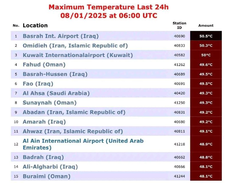 محليات6 مدن عراقية بقائمة المدن الأعلى حرارة في العالم قبل 4 أشهر 28 مشاهدات شارك الديوانية تعطل الدوام الرسمي يوم غد الأحد بسبب ارتفاع درجات الحرارة6 مدن عراقية بقائمة المدن الأعلى حرارة في العالم الوسومالحرارةالعالمحرارةقد يهمك أيضا محليات المرور العامة تصدر وصايا لمستخدمي الطرق الخارجية بسبب الظروف الجوية الحالية قبل ساعة واحدة 8 مشاهدات سياسة الرئيس الحلبوسي والعامري يؤكدان على دعم استقرار العملية السياسية وتلبية تطلعات المواطنين قبل ساعتين 9 مشاهدات سياسة الرئيس الحلبوسي والعامري يناقشان آخر التطورات ومشاورات تشكيل الحكومة قبل ساعتين 8 مشاهدات عربي ودولي مبعوث ترامب الى دمشق: واشنطن ملتزمة بهزيمة الإرهاب بالشراكة مع سوريا قبل ساعتين 6 مشاهدات عربي ودولي ترامب: الولايات المتحدة سترد إذا هوجمت القوات الأميركية مجدداً قبل 3 ساعات 10 مشاهدات