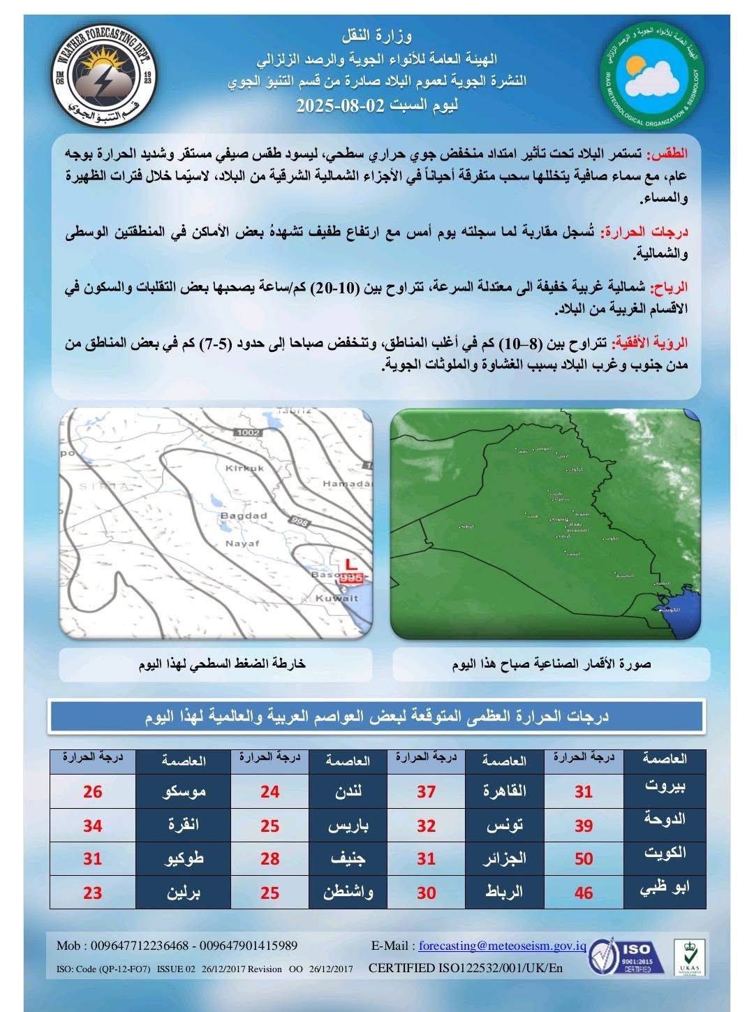 طقس العراق.. غبار وارتفاع درجات الحرارة خلال الأيام المقبلة قبل 4 أشهر شارك طقس العراق.. غبار وارتفاع درجات الحرارة خلال الأيام المقبلة