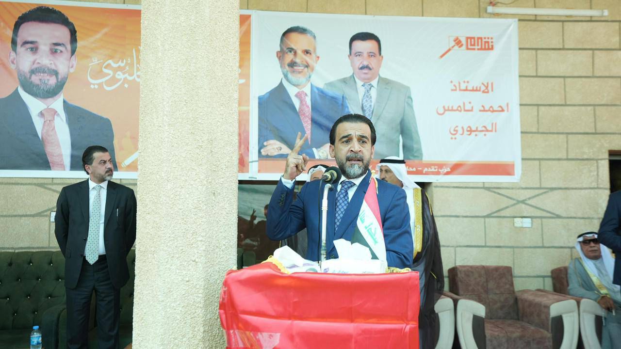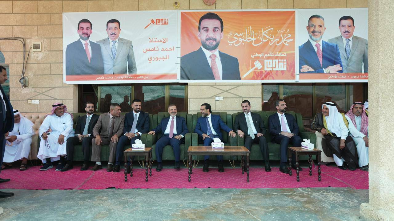 رئيس حزب تقدم الرئيس محمد الحلبوسي، يرافقه نائب رئيس الحزب محمد تميم نائب رئيس مجلس الوزراء وزير التخطيط وعدد من قيادات الحزب في كركوك، يحضرون تجمّعاً جماهيرياً لمرشَّح الحزب في كركوك أحمد نامس الجبوري بناحية العباسي.